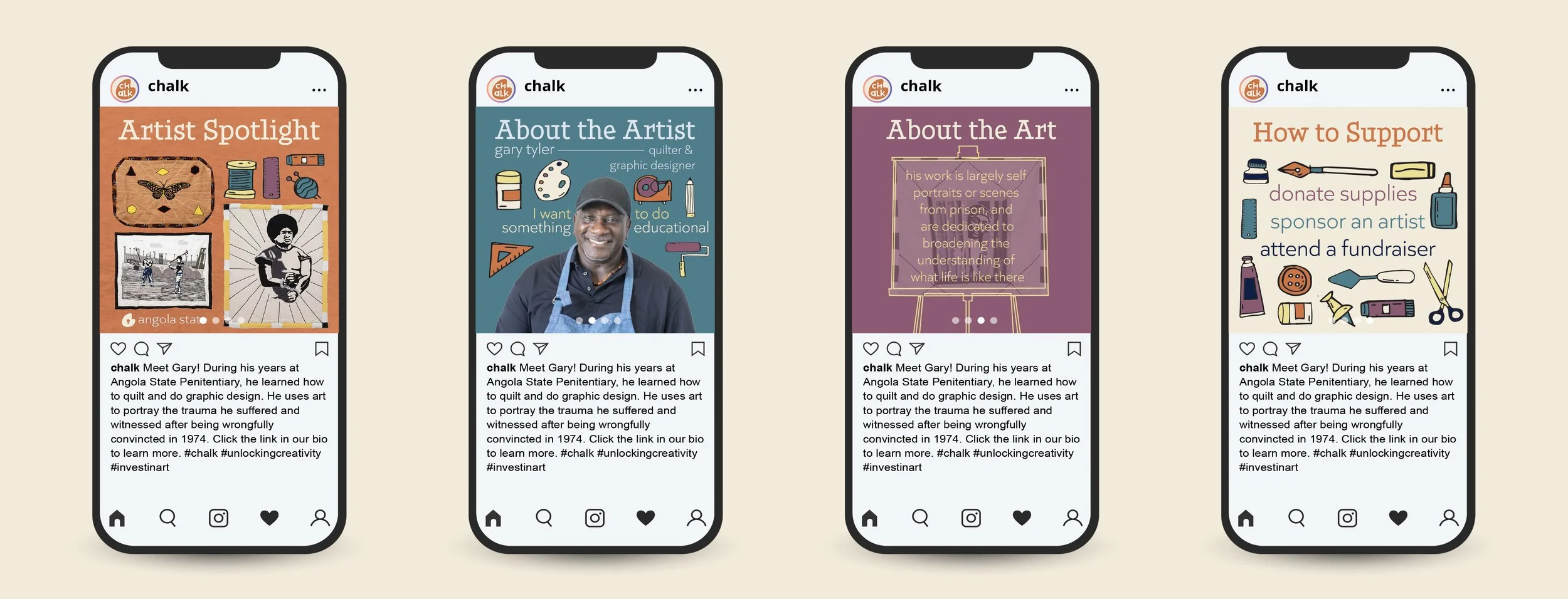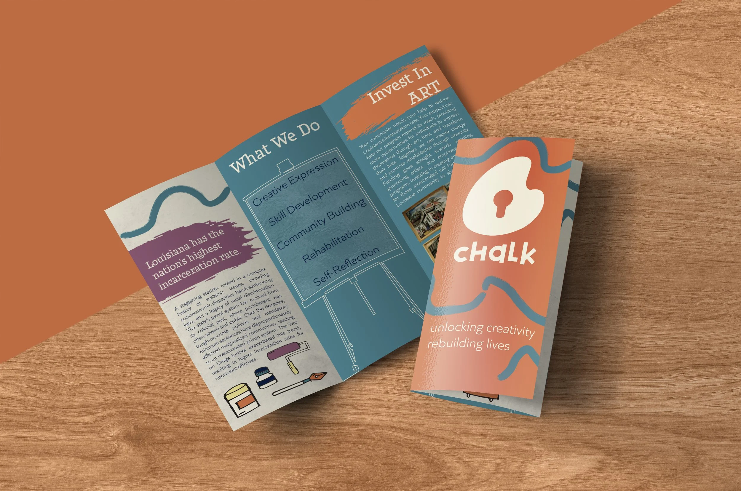 Chalk is a conceptual non-profit company dedicated to establishing an in-prison arts program in Louisiana with the aim of reducing recidivism through creative expression. Rooted in the belief that graphic design can function as a megaphone for social good, the project uses design as an advocacy tool, amplifying the need for rehabilitative, human-centered alternatives within the justice system. Through drawing, painting, sculpture, weaving, and textiles, Chalk would offer incarcerated individuals meaningful outlets for expression supported by on-site art therapists.