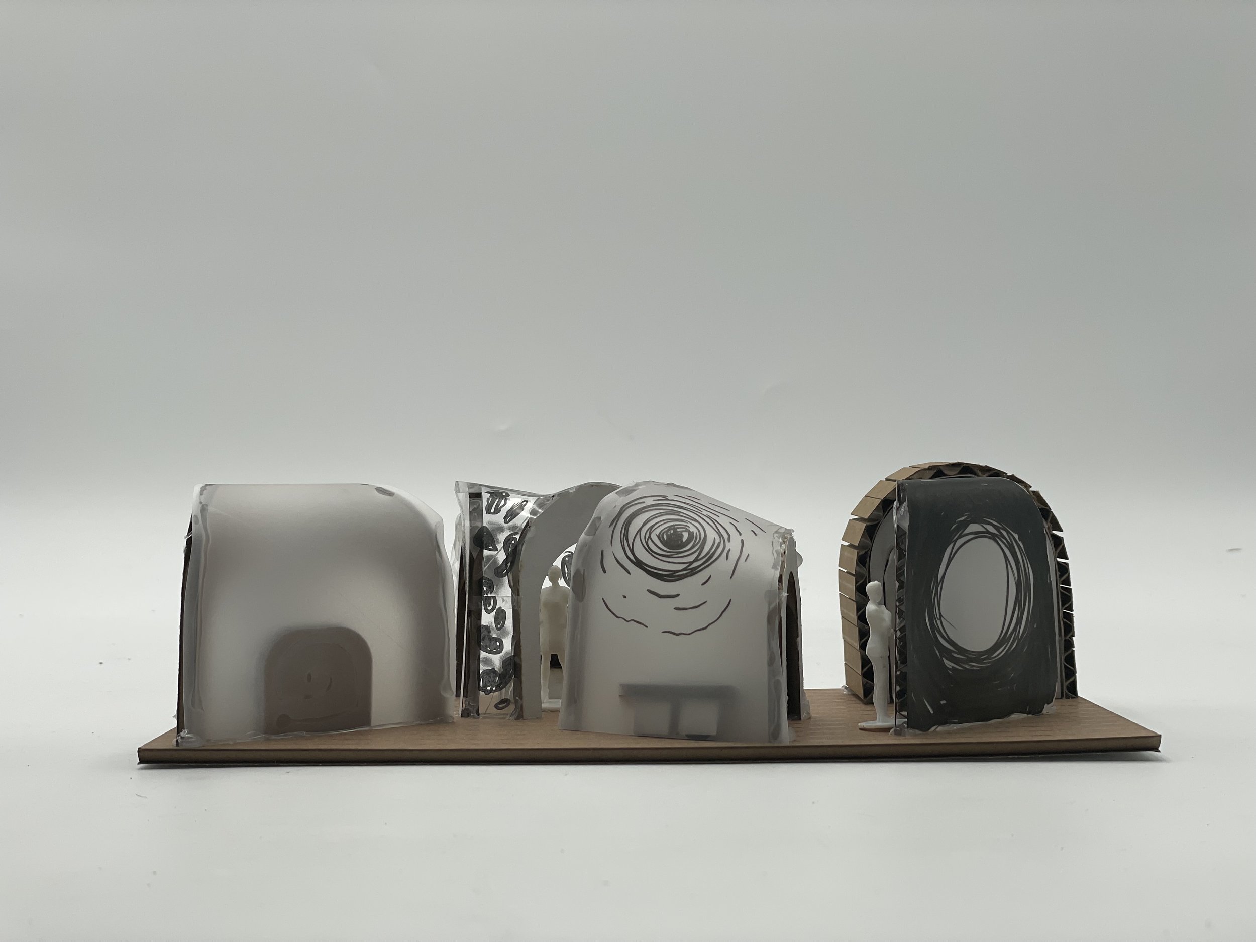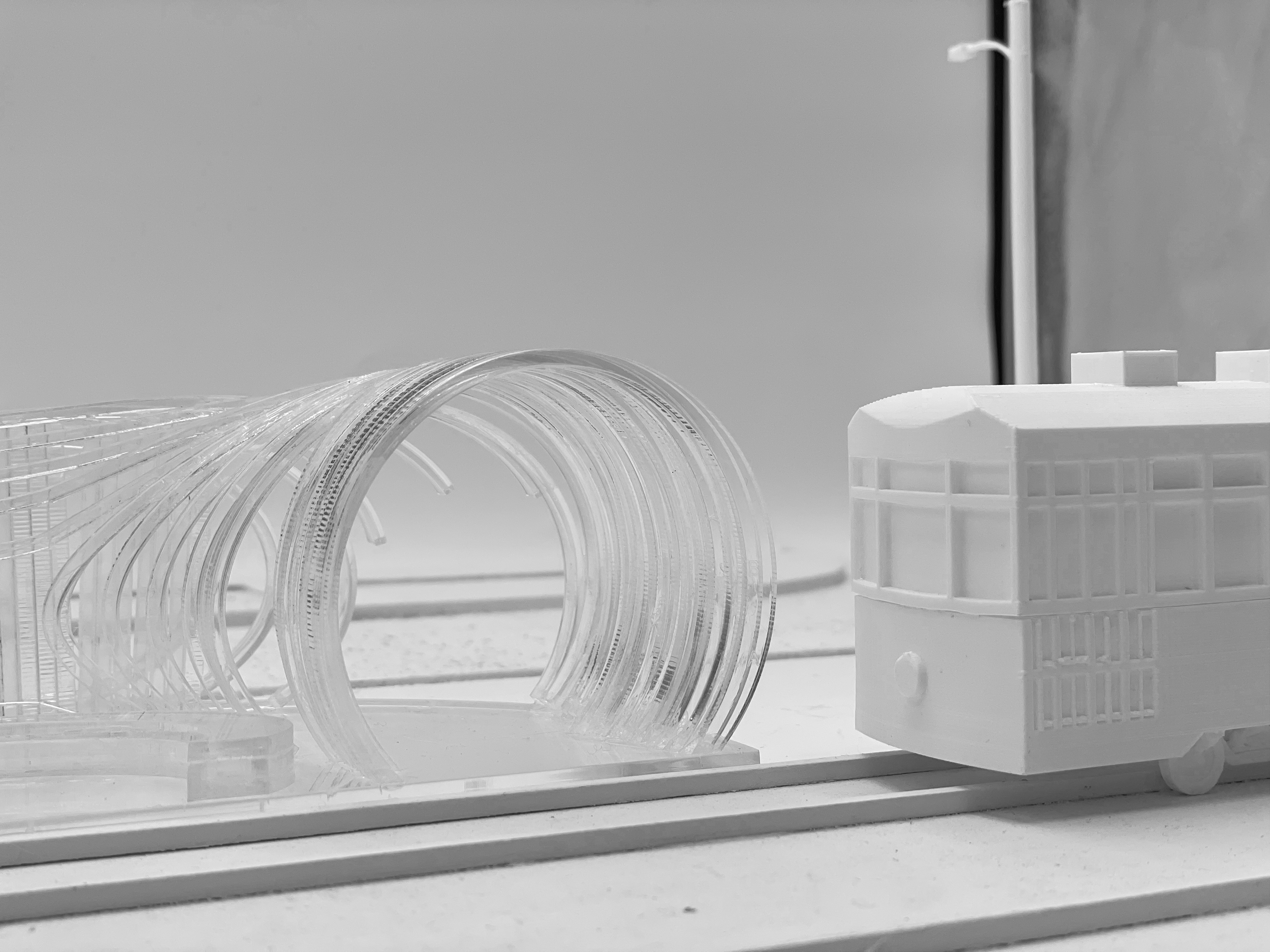 Perceptual Pathways is a design proposal for a Streetcar pavilion in New Orleans, Louisiana. This pavilion encourages users to consider visual impairments and the spectrum of eyesight in terms of what is more or less difficult to see. By looking through transparent to opaque materials, viewers will learn about glaucoma, cataracts, macular degeneration, diabetic retinopathy, and complete blindness. This educational art installation will raise awareness through play and discovery, emphasizing the fragility of our vision.